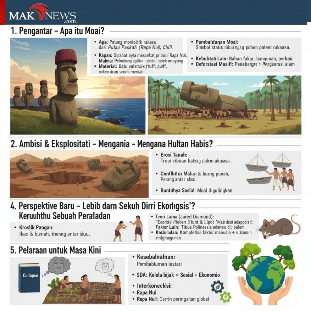 Anda tahu Moai? Patung-patung Moai yang berdiri kokoh di Pulau Paskah (Rapa Nui) bukan sekadar pencapaian artistik yang luar biasa, melainkan juga simbol dari kompleksitas hubungan antara ambisi manusia, struktur sosial, dan daya dukung alam.
